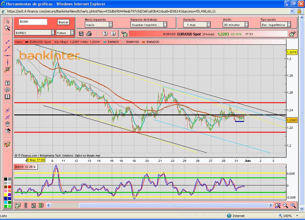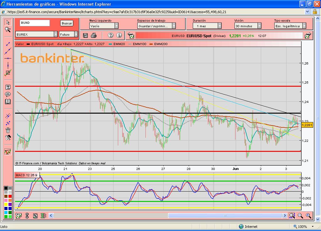 De todas formas mientras no se supere el 1.2480 podriamos tener un nuevo movimiento hacia los mínimos anuales. Hay que pensar que estamos en una zona de resistencia muy importante.