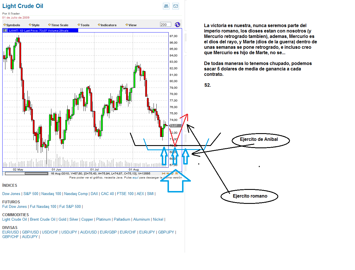 Gordon Geko escribió: Crude Oil 7 termina.................el domingo coge tribuna porque cerrare mis 2 grupos de compra cuando abra con HUECO AL ALZA.............el mismo que esperaba Spirit la semana pasada....................