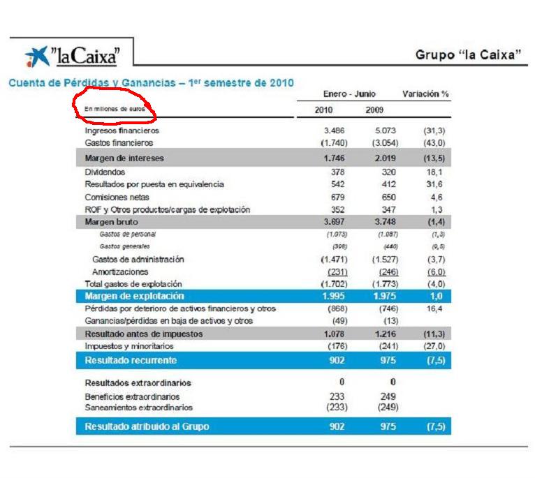 Y si alguien piensa que no están en situación de prestar.....aquí pongo un balance semestral de La Caixa (como muestra un botón).....recordad leerlo en "millones de euros".