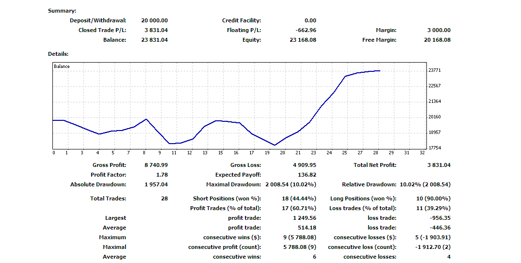 Lo que no hago es estar pendiente del sistema, eso fijo, si no ya la habría cagado, supongo. Lo único que he hecho a mano es aliviar posiciones cuando tenía, a lo mejor, 27 lotes buy y 15 sell, más que nada porque es tontería tener tanto abierto y mi sistema no hace OrderCloseBy, porque no me dio tiempo a implementarlo. Lo he hecho tres o cuatro veces, pero el resto del tiempo funciona el sistema solito, paso de tocarlo.