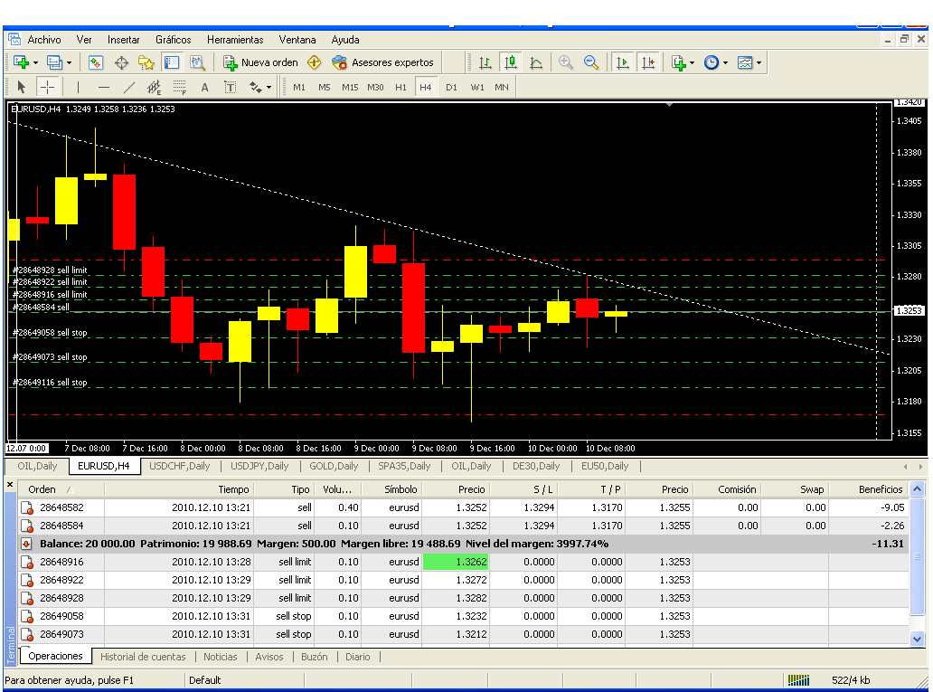 y la sperdedoras de manera inversa al stop, son cada 10 pips para hacer un fraccoinamiento equidistante, tapando los "huecos" del escenario, dado que hay una distancia de 40 pips desde la entrada inicial de la primera fracción y el stop global pra todas ellas.