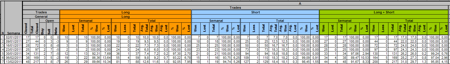 Como se puede ver, en este sistema es el precio el que marca la pauta, dejando el acierto del movimiento futuro en un segundo planp. Ojo!!, esto no quiere decir que no tenga importancia acertar para donde va tirar el precio, de hecho, si hubieramos acertado la subida de este año, ahora estariamos en beneficios por encima del retorno esperado. Pero lo importante es ver como se ha comportado en un rango en contra de unos 900 pipos. La volatilidad de la équity siempre ha estado muy controlada.