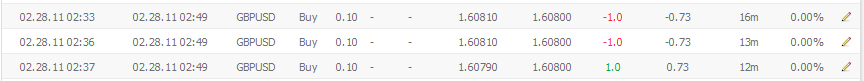 Se ejecutaron 3 buy de 0,1 lote en el gbpusd. Se detectó el error a los pocos minutos y fueron cerradas sin que afectase prácticamente a la équity. Supusieron 1 pipo de pérdida sobre 0,1 lote. (Los británicos siempre tocando los peñones!!!!)