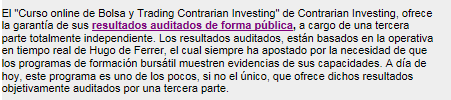 Ahora una pregunta, y por favor lease sin maldad. Si yo quiero ver los datos auditados tuyos y de Greg y Fran (con dinero real) ¿cuál es el link? ¿Tengo que registrarme en un curso de Trader Profesional? ¿estáis en Unience? ¿vais a estar en el traderlinker ese?