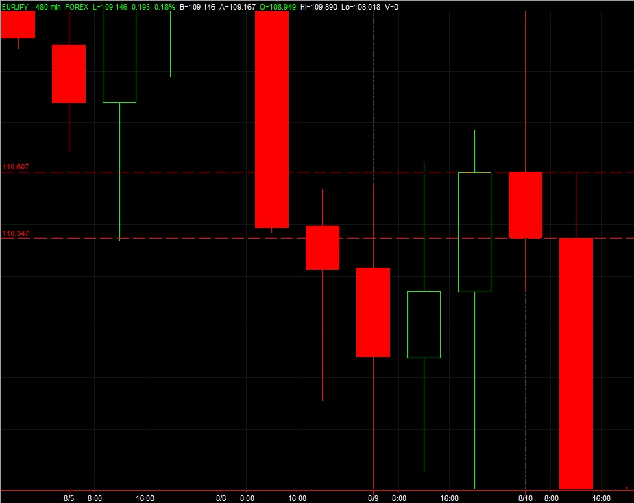 Nuestro orden de venta queda ejecutado al nivel de la línea verde, corto 110.15. Hay traders cual prefieren setups intradiarios, otros semanales, yo hago los dos.
