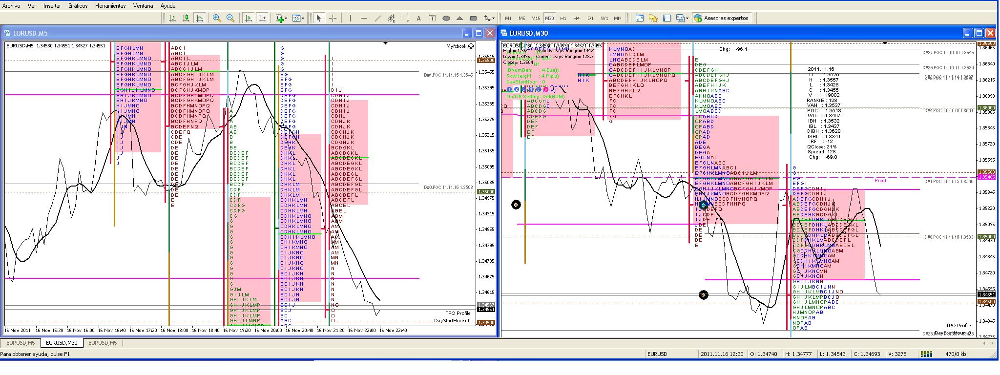 Usted pregunto qué tiene que ver el volumen con MP. Sin ver el volumen no tiene sentido el indicador MP en forex, hay que ver el número de contratos que se han cruzado y si quedó negocio sin terminar o si por el contrario se ha secado la subasta. Como esto es imposible en forex solo queda hacer el estudio vía futuros. Qué sentido tiene hacer el estudio de una parte en forex y otra en futuro, si se puede hacer todo el análisis mejor en futuro y si se quiere colocar las órdenes en contado.