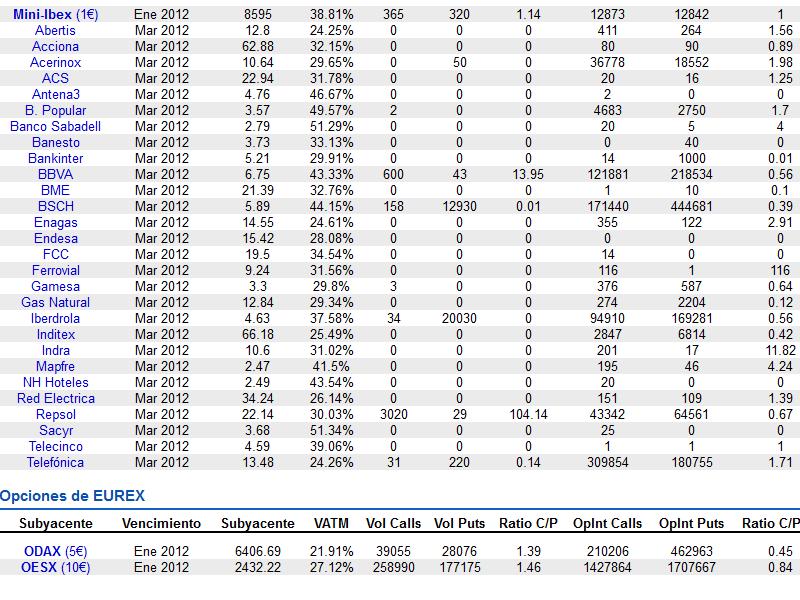 El santander, solo cotiza en opciones en meff, ademas, he sacado la pagina del meff antes de poner precios y demas, solo, y digo solo, he jugado con aquellas opciones en las cuales ha habido transacion (no me quiero hacer trampas), no he cogido ni el precio mas alto ni el mas bajo (no soy ni el mas listo ni el mas tonto), he cogido el precio ultimo al que en esos valores se han transado opciones...