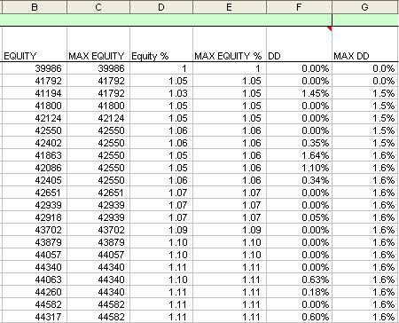 Las columnas equity, Max equity y DD se crean como ya he comentado.