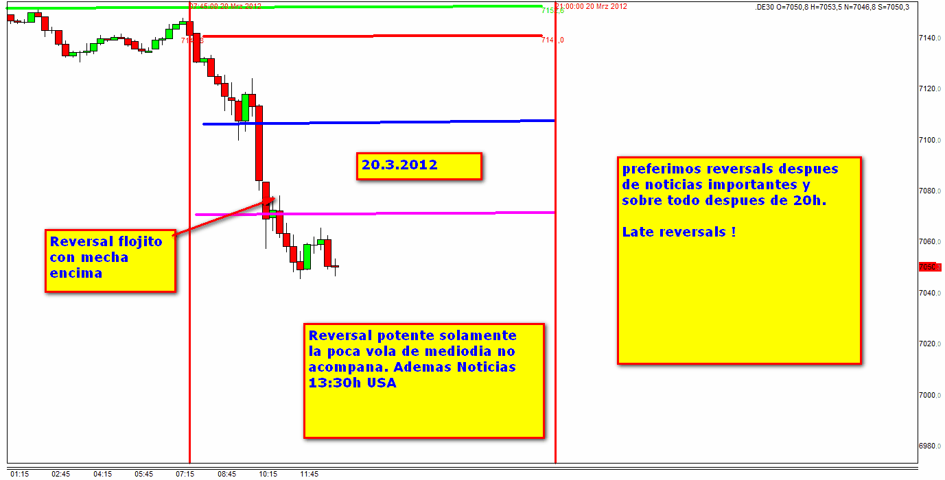 3. Entonces habia que esperar un Reversal significante que se presento a las 12:15 h . Pero medio dia no entramos pues la poca Vola no soporta una continuacion.