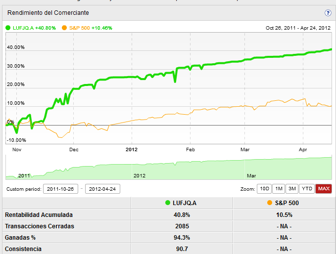 Empezaré con una cuenta que ya he publicado últimamente en el hilo "Prueba estudio PipSpirit2011", la última gráfica el 29 de MArzo y se puede ver en el siguiente enlace: viewtopic.php?f=9&t=14228&start=600#p173986