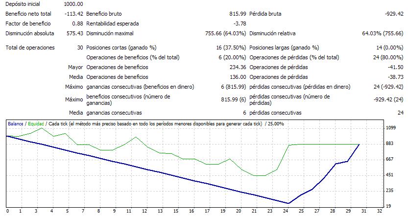 He cogido, los mismos parametros que le puse a alberto, el par que he utilizado es el eurusd, pero por la razon que yo no tengo historicos del par que puso, he utilizado desde el primero de enero de este año hasta hoy, que si que tengo datos, y esto me sale...