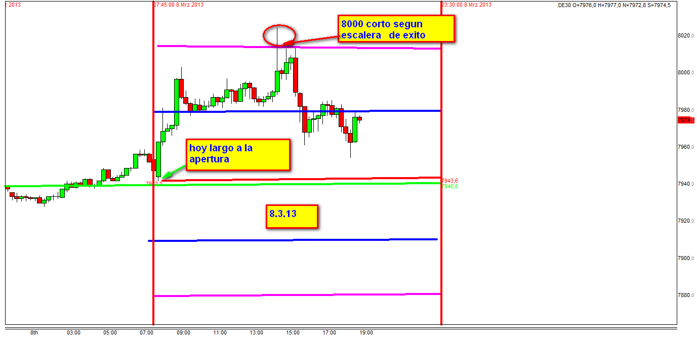 Largo a la apertura y activado corto continuo de acuerdo con la escalera del exito al precio de 8000.