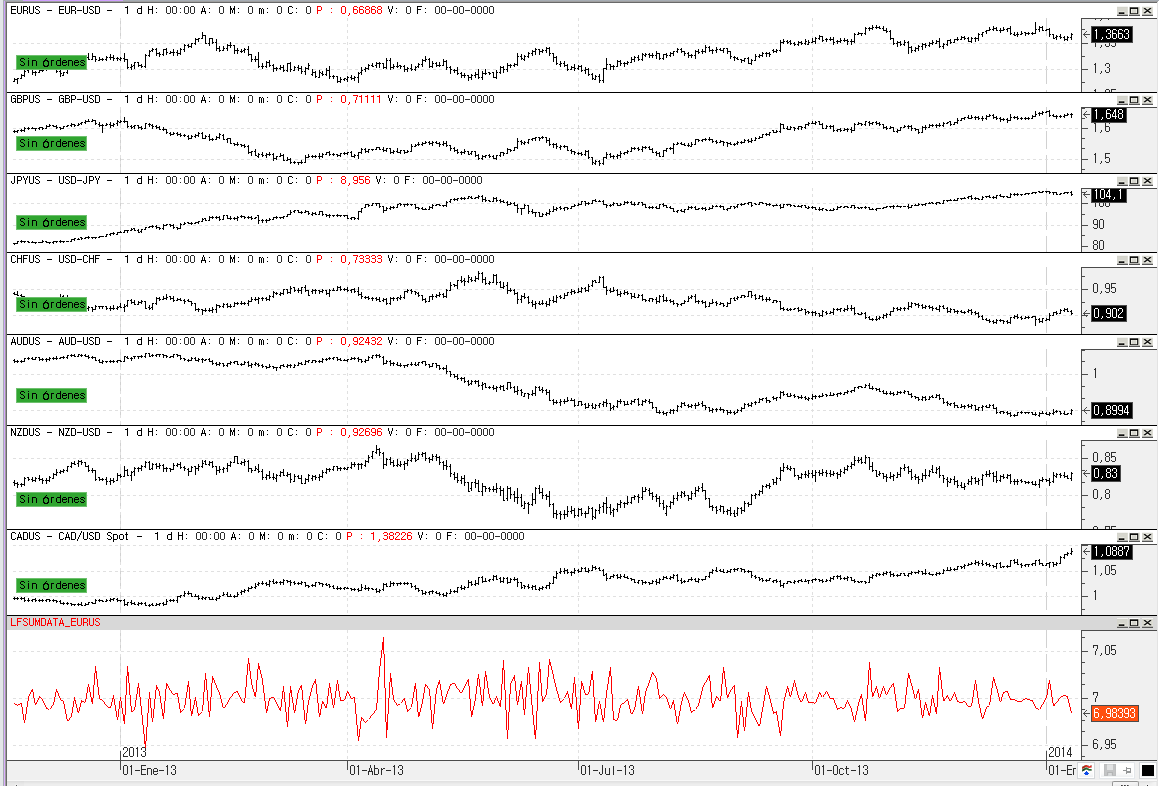 Lo que trataba de decir con el Benchmark, es más o menos sacar un valor o precio de referencia en PIPS. Sabiendo esto se puede determinar la desviación de cada uno de los cruces que lo componen. Lo ideal sería hacerlo como Reuters (160 cruces de divisas), pero sería complicadísimo encontrar cotización en TR. Si lo piensas mejor, las 8 monedas principales abarcan mucho % del total, luego el resto es opcionalmente desechable.