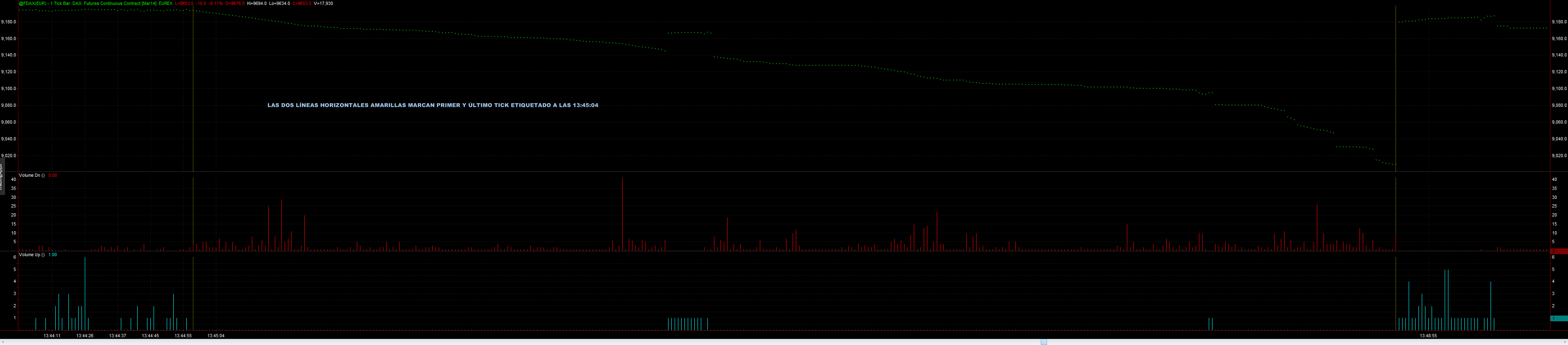 Si en el gráfico de ticks pudieras consultar el timestamp de cada tick con una granularidad de microsegundos, verías que todos los ticks que conforman la bajada tienen el mismo microsegundo.