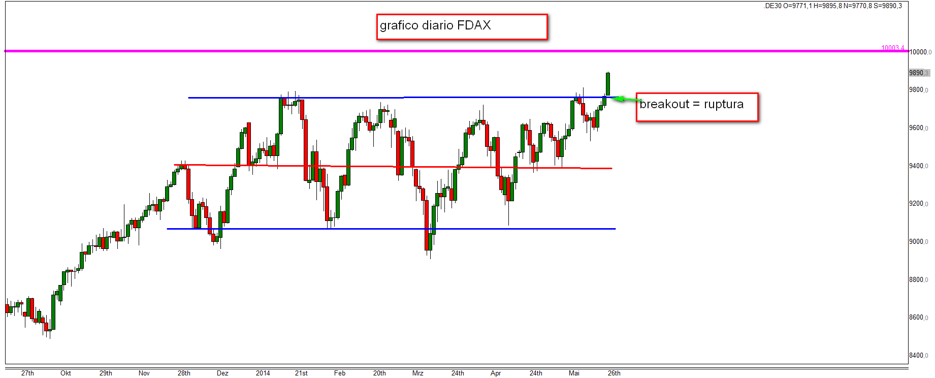 1. El grafico diario del FDAX adjunto demuestra que una ruptura en alza del precio historico maximo era inminente .