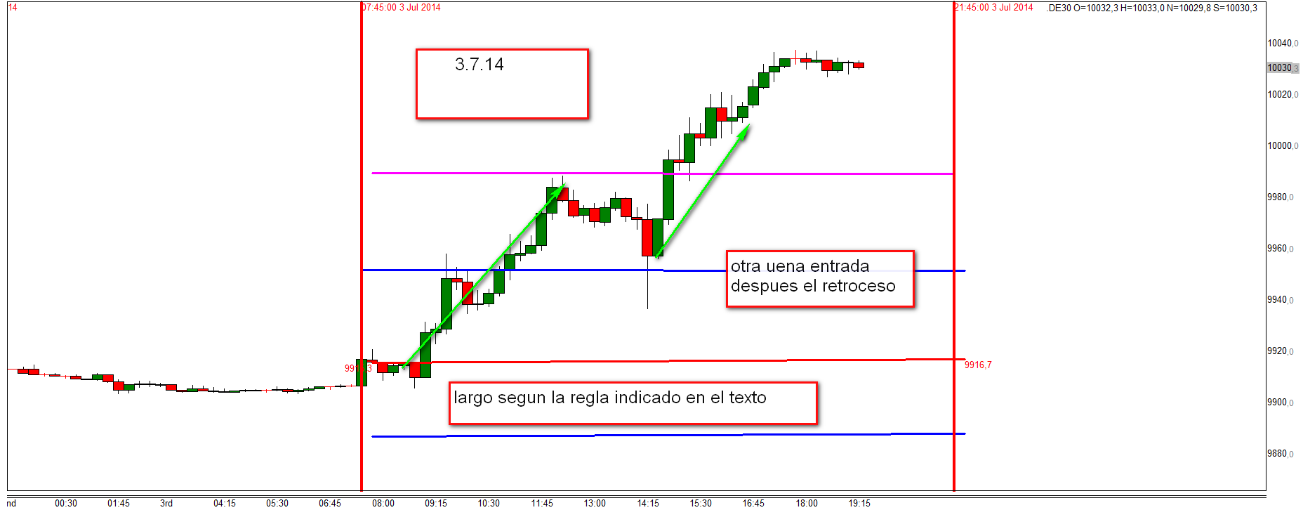 Se trata de la correlacion FDAX y futuros DOW ( DJIA FUT ). Es un Setup muy potente . Por regla general