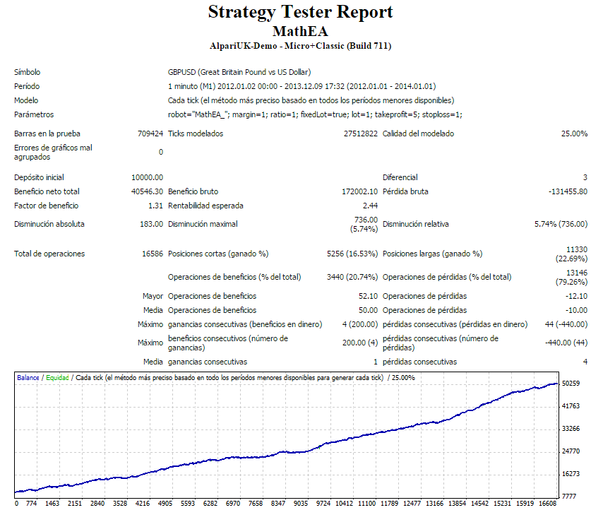 Evidentemente esta estrategia tiene un fallo y es perdedora pero nuevamente subyace la idea de tener un conjunto de órdenes que tratan de obtener beneficios de forma segura independientemente del movimiento del precio (es decir, que a priori ya sepamos que es ganador por la construcción de la estrategia, sin necesidad de backtest).