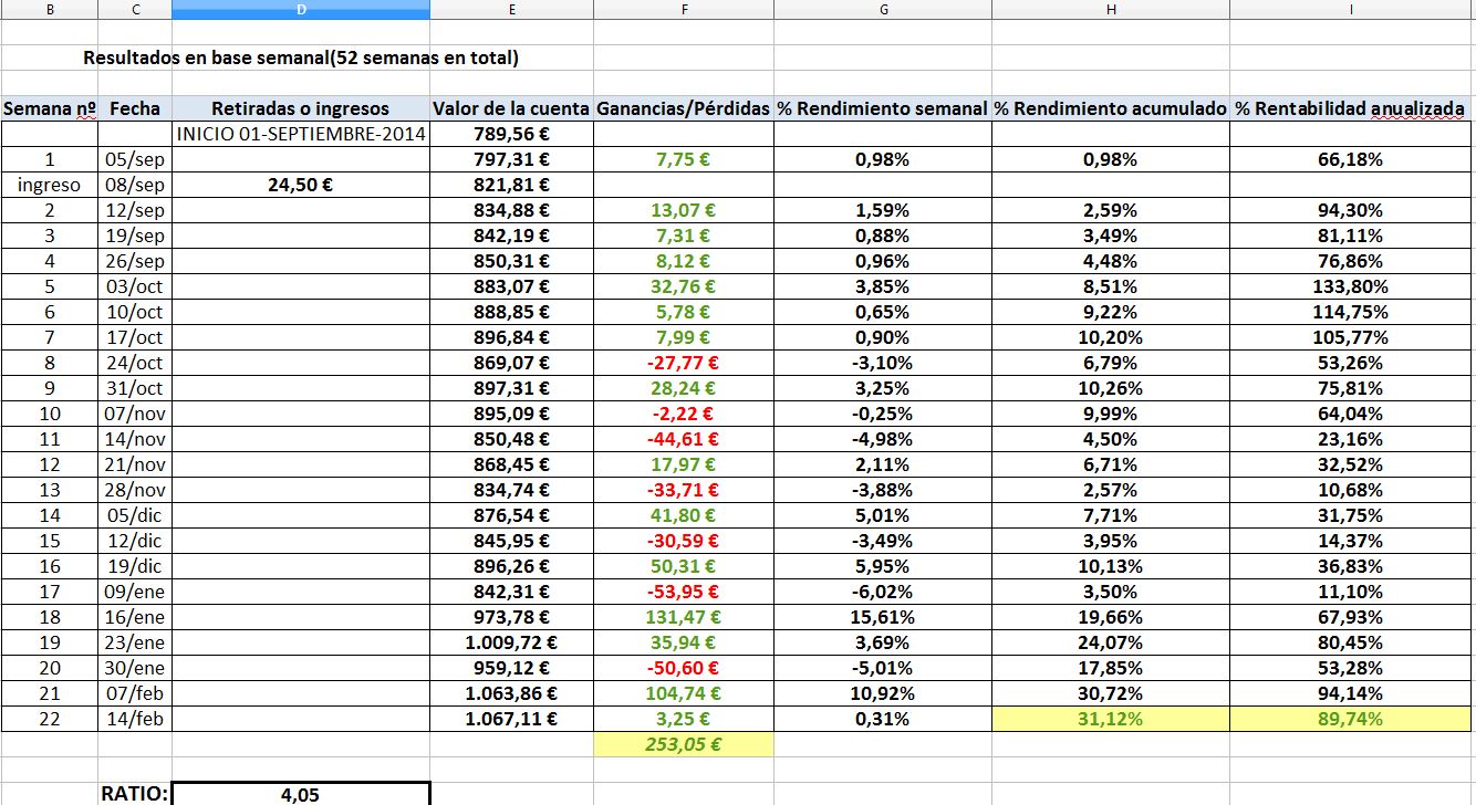 Claro que aún 22 semanas son pocas, hace falta mucho más tiempo, aunque ya con un año están cogiendo a gente para hacer trading en real.