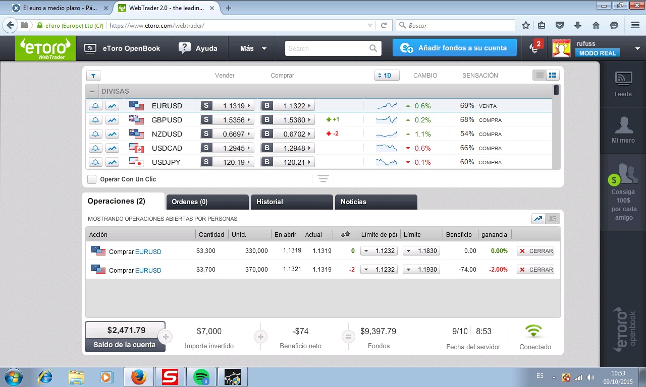 Resultado, antes con los 10k que tenía, invertidos en 1.1275 (de media) me jugaba 4.3K para ganar 75K cerrando la mitad en 1.184 y la otra mitad en 1.193 y ahora, pues me juego 6K de un total de 9K que me quedan para ganar 48K cerrando idem.
