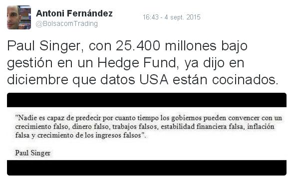 Yo cuando oí a Yellen este verano decir que "los Mercados están muy sobrevalorados", me pareció que esas palabras son, por quien lo dice, entre una pauta y una orden.