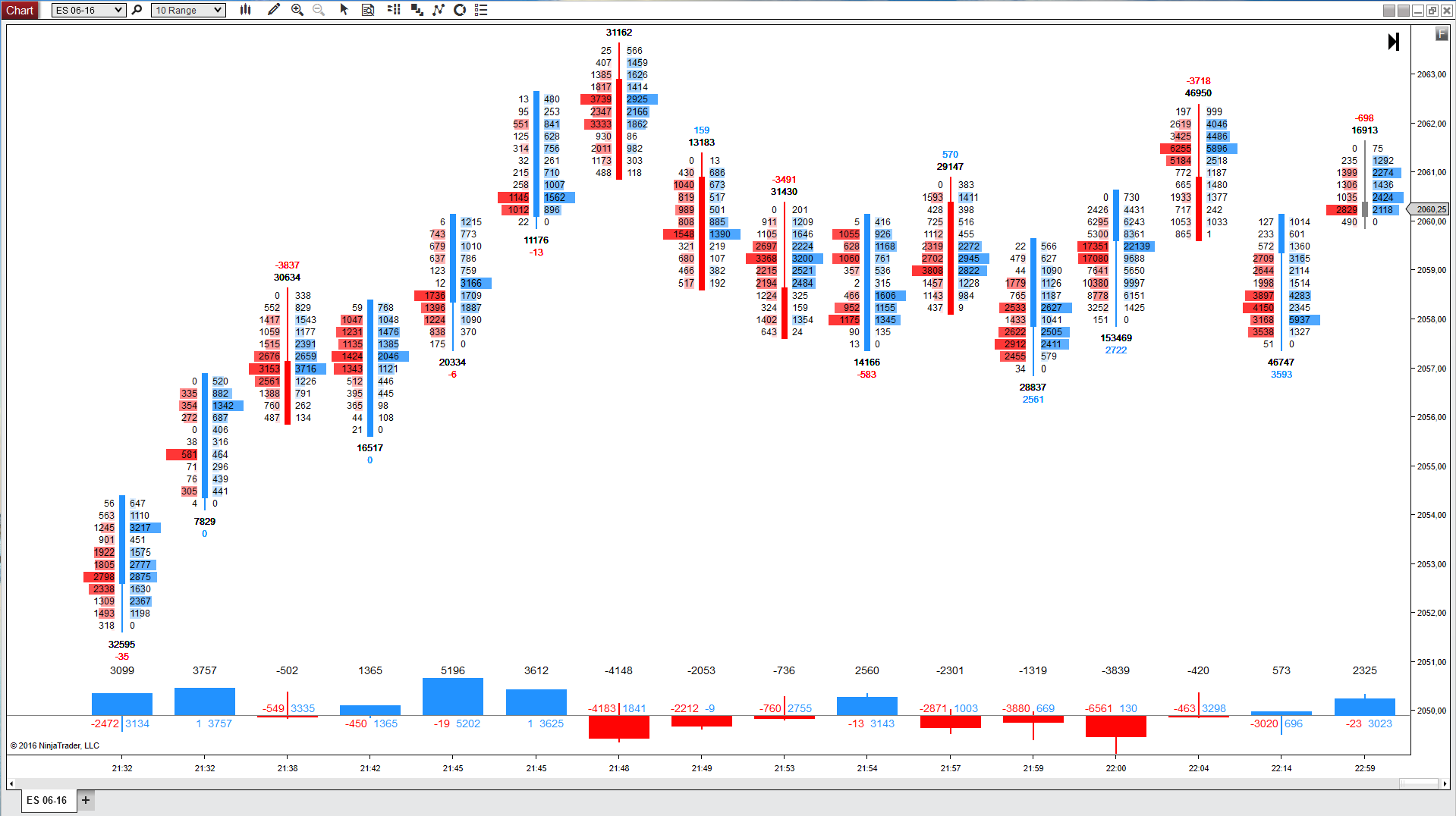 Así que las limitaciones vendrán por ahí. Particularmente uso Rithmic y no tengo esa limitación. Aquí una captura del mini-sp del 10-septiembre-2015 (es histórico, no market-replay, y son casi ocho meses de antiguedad de los datos).