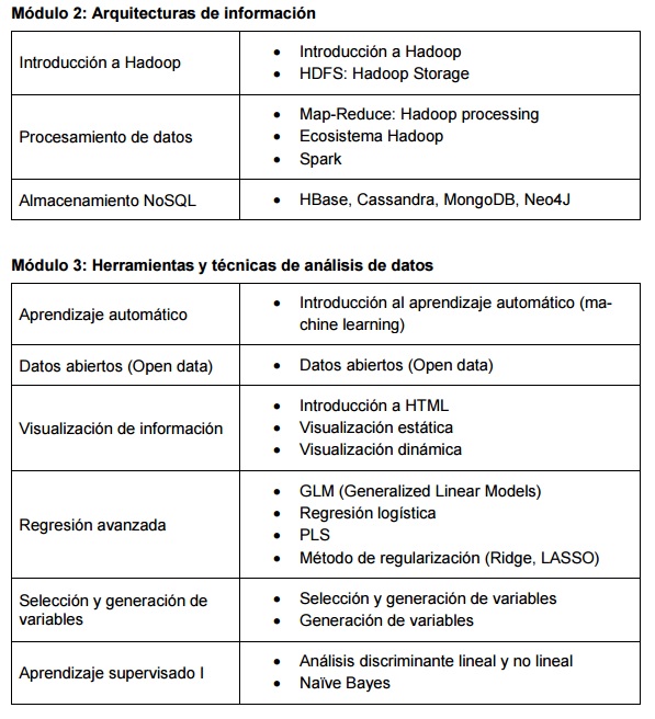 Les dejo aquí el temario del master (postgrado universitario) que estoy cursando actualmente. Llevo 2 semanas de clase.
