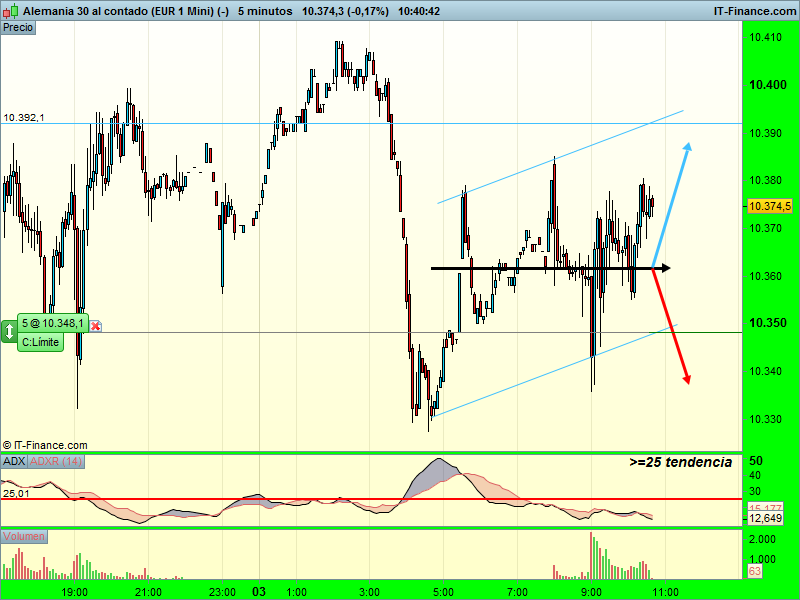 El Dax se aproximó a zona caliente 10327 durante la madrugá...y ayer a las 19,05 horas también...donde hay rebote alcista claro....tara comprando rasputin y los profesionales quien sabe naaaaa.....