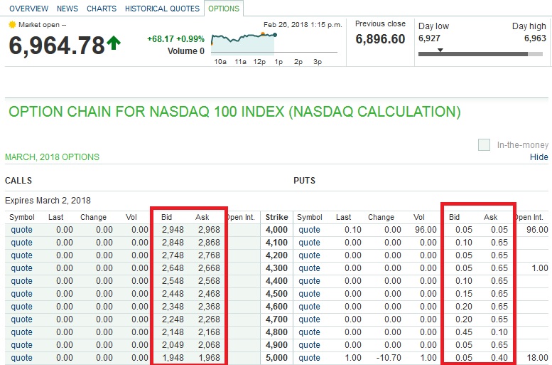 Pero estas seguro que en ese enlace están las horquillas de las opciones put y calle del índice Nasdaq100?