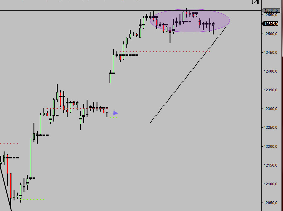 Entiendo que has visto como hay un abandono de compradores descaradisimo, + una venta declarada + una debilidad compradora, sin embargo has esperado a la siguiente vela, que ha hecho que un stop de 10 puntos se conviertan en 40... ( has visto el MP pero no el atractor ).