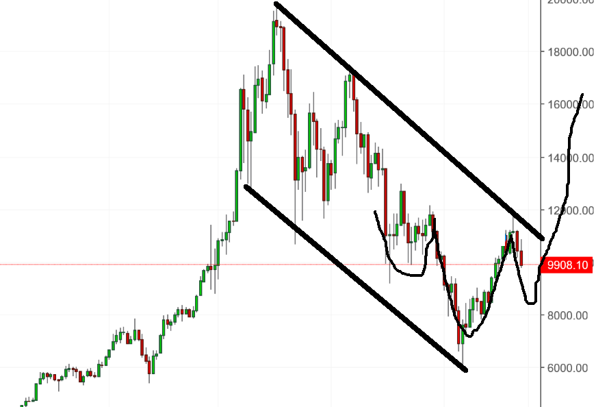 Para bugler y pompeicrip, esta sería vuestra visión, un HCH invertido, que llevaría al bitcoin de nuevo a máximos..ánimo¡¡¡