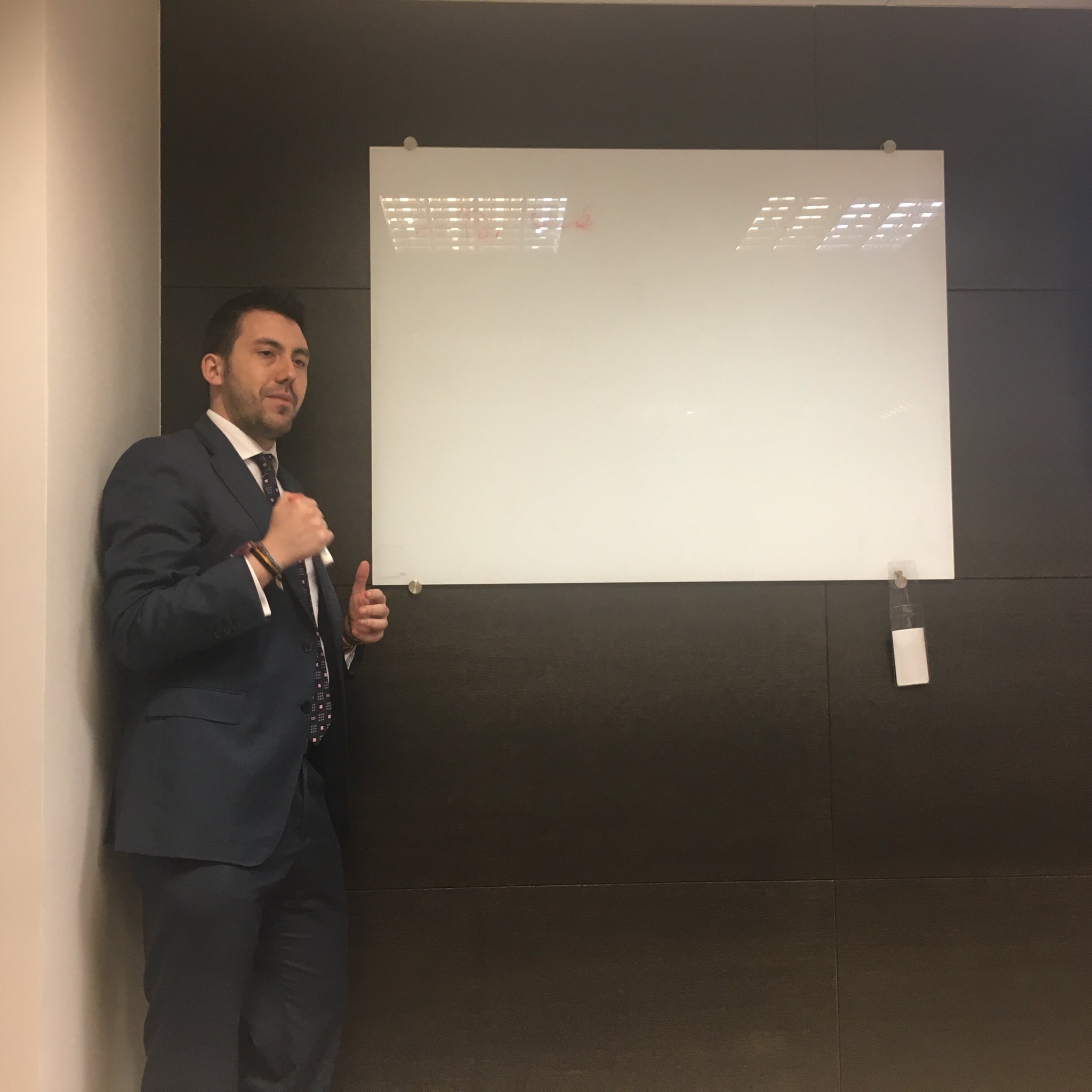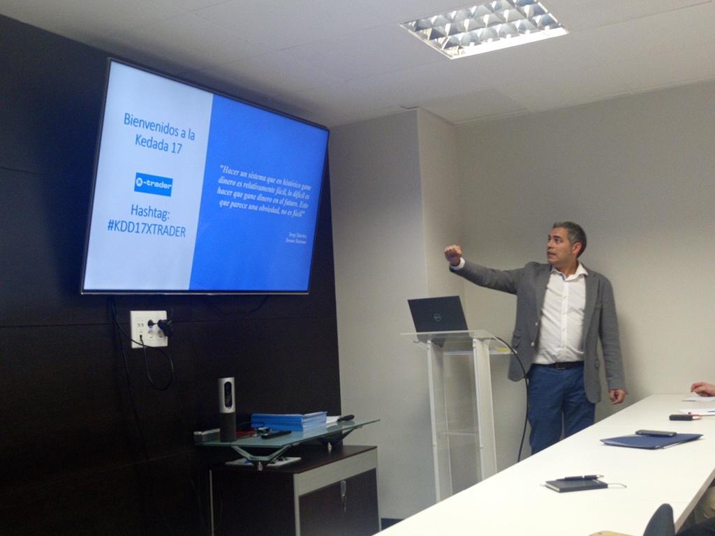Después de mi presentación, le tocó el turno a A. Sánchez, que trabaja en uno de las pocas oficinas de prop trading que quedan en Madrid, contándonos un poco cómo era su día a día como prop trader. Muy interesante, sobre todo por los conocimientos de mercado que compartió.