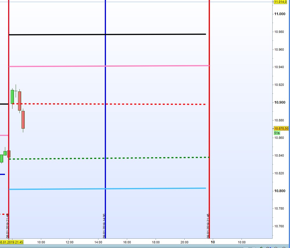 GeorgM escribió: 08 Ene 2019 11:55 " Las zonas de actuación son a veces atravesadas dinámicamente, mientras que en otras ocasiones la cotización se gira exactamente sobre ellas. También puede ocurrir que el precio se gire uno o dos puntos antes de la zona. Un trader experimentado puede por ejemplo, después de recibir el aviso de la alarma antes definida, mantener una orden límite en espera para adaptarse a esta casuística."
