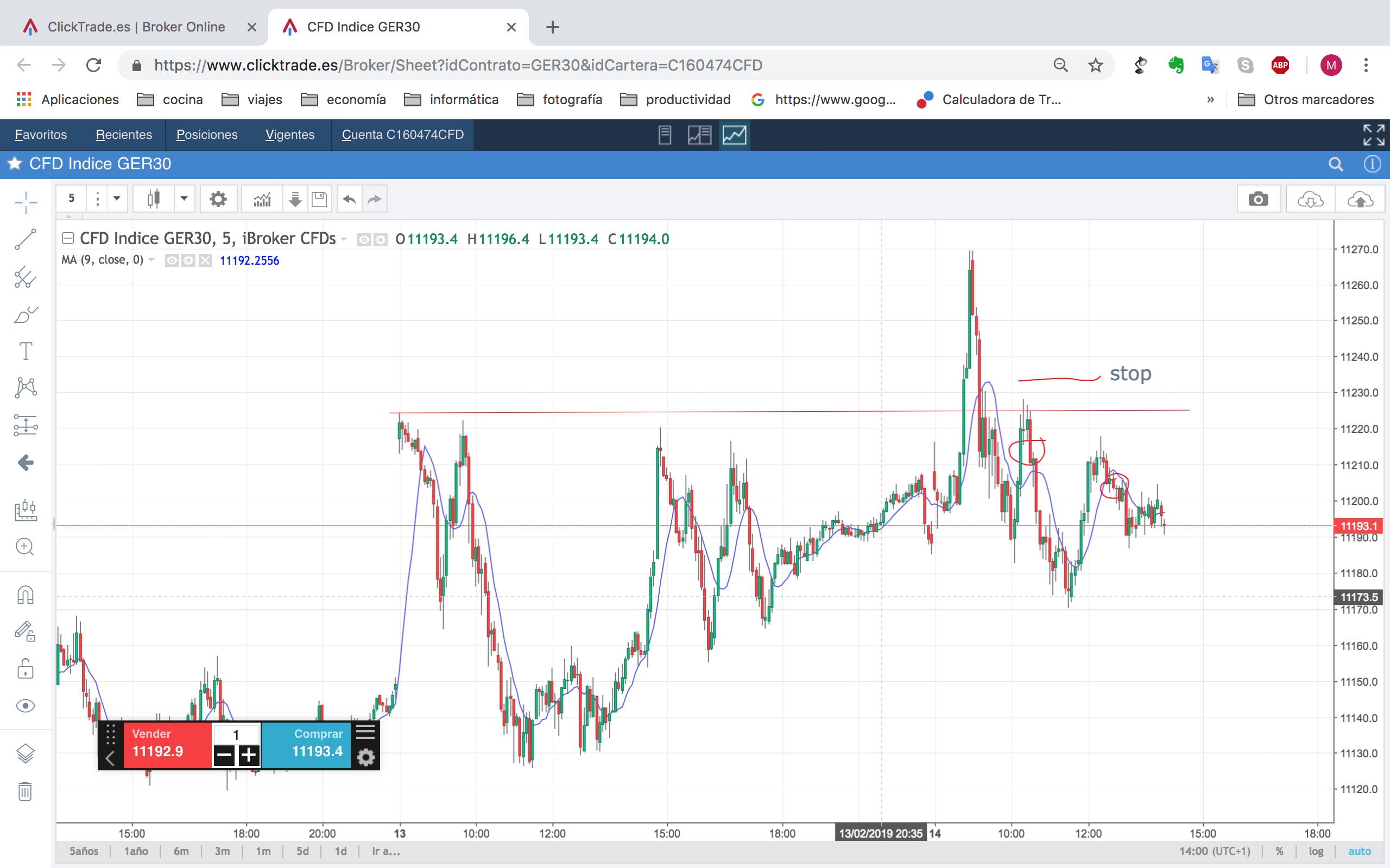 Pero la tendencia es alcista en ¿verdad?, y he entrado buscando un posible inicio de tendencia bajista, con un s.l. pequeño para el beneficio esperado