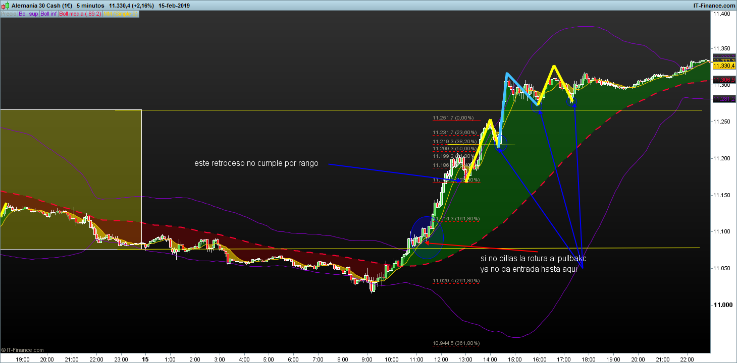 Hasta que no explique esas pautas, por sistema en estructura no tenias entrada salvo el pullbakc al mínimo del jueves, con las bollinger si y voy a explicar una de las pautas que tiene en este caso las roturas de volatilidad
