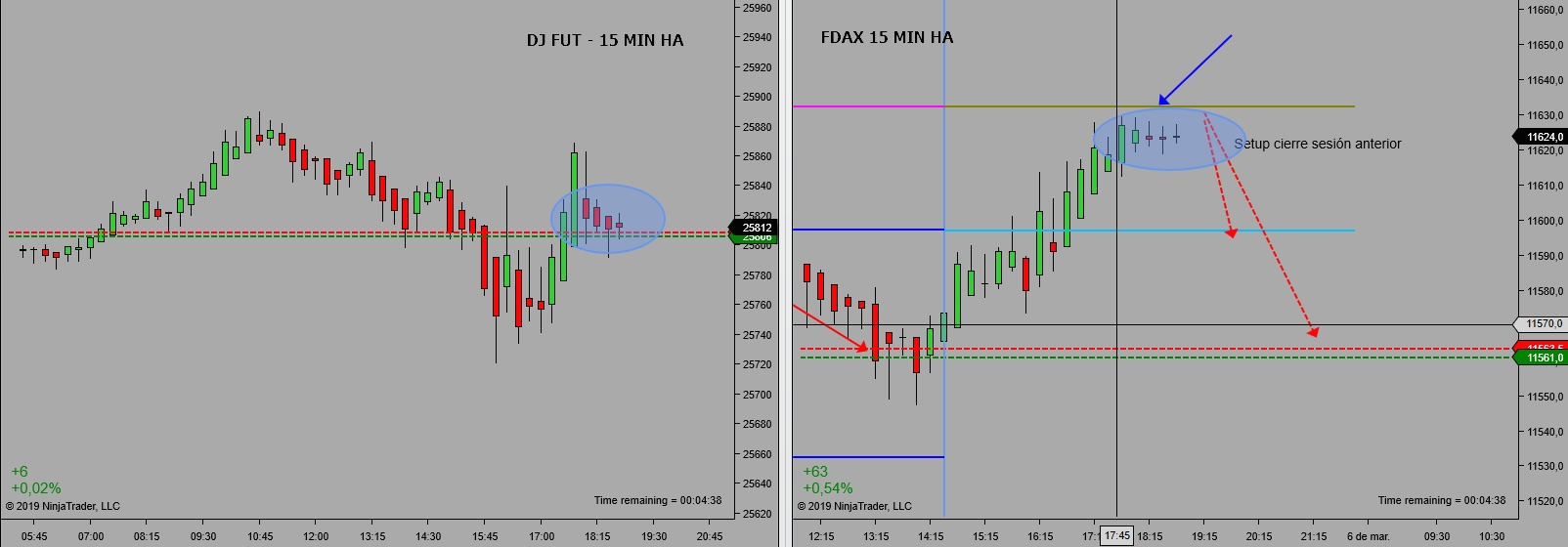 GeorgM escribió: 05 Mar 2019 18:11 Hay set ups que nos dan el pan de cada dia y extras. Estos lo operamos con mucho mas cautela. Quiero ver una Vela de 15M HA a la altura o debajo del max del dia.