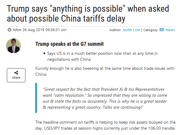 Además todo el mundo sabe que va de farol porque por muy presidente de EEUU sea no tiene poderes para hacer que las empresas salgan de China (y aún imponiendo ciertas medidas, eso no se puede hacer en un espacio corto de tiempo).