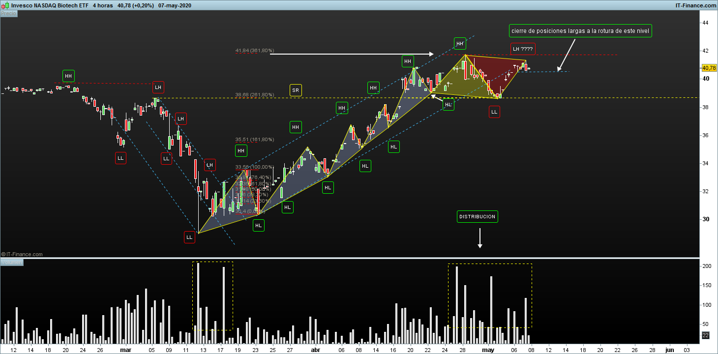 Esta en pauta de distribucion y manda cierre de posiciones largas en la rotura de la estructura del ultimo segmento alcista en 40,50 apx, eso sin utilizar coberturas