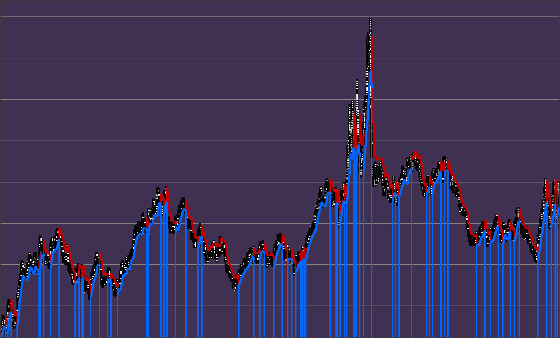 Entonces el alisado en fases de alta volatilidad se acerca al precio y en fases de volatilidad baja se aleja...dinámicamente.
