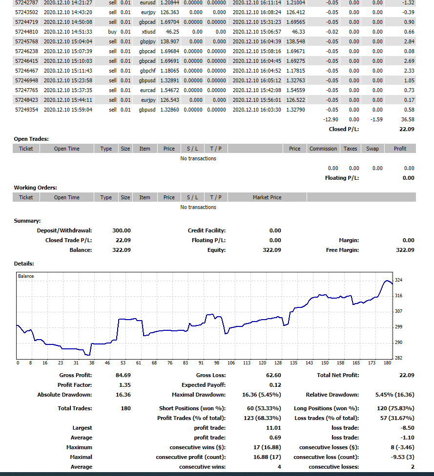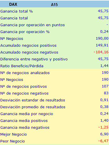 - Tienes una ganancia media de 5 pips y una pérdida media de -15 pips. Si no fuera por ese casi 74% de acierto que tienes, la cuenta estaría condenada a tener abundantes pérdidas, cuidado con eso.