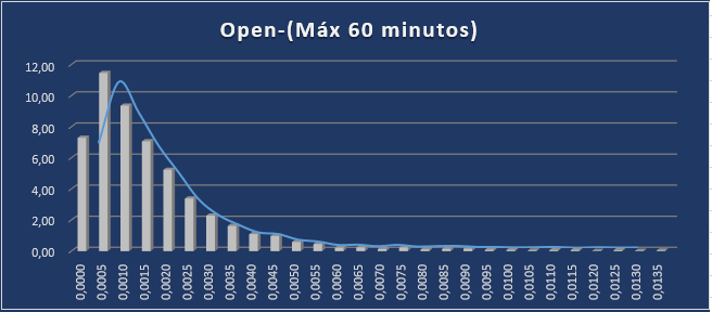 Ahora ya sabemos la desviación estándar por horarios en barras de 60M y la diferencia entre máximos y mínimos. Lo siguiente que necesitamos saber será la frecuencia en que nos habrían entrado órdenes limitadas y con la que podríamos salir del mercado con beneficios.