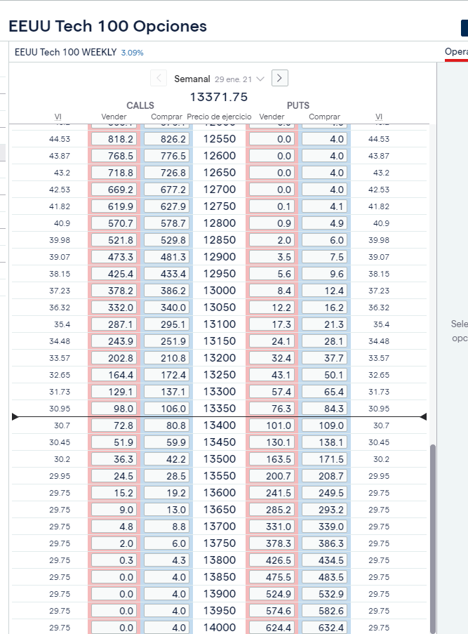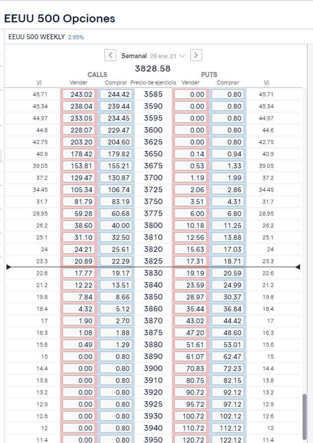 3. El mismo mercado en opciones semanales pero sin capar (vencen mañana). .