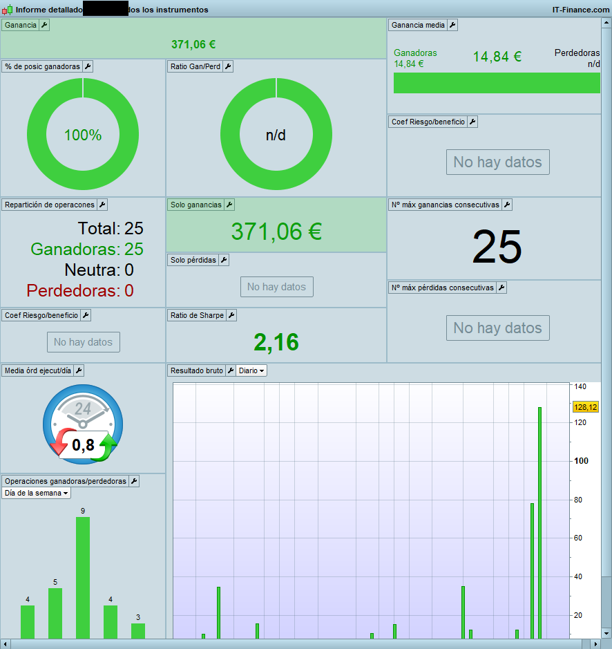 Como digo no es un sistema de lo mas alla, con un riesgo casi igual a la recompensa o risk/reward de 1, y unas fiabilidades mas altas del 50%..