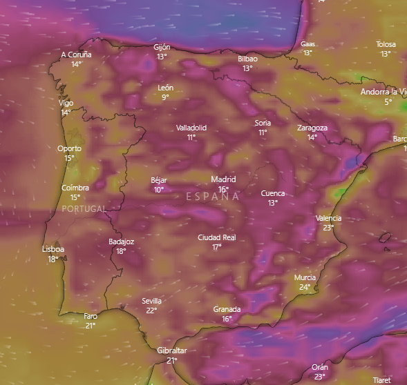 Os pongo como curiosidad los mapas de la predicción para el día 2.