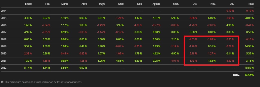 Aquí se puede ver como se me ha ido prácticamente casi todo el beneficio del año. Evidentemente existen razones para esta debacle: