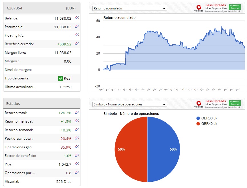 La satisfacción que tengo es tan inmensa que no la puedo explicar, después de tantos años esta tranquilidad y certidumbre que he podido conseguir en mi trading es una pasada. Desde luego que para mi el hecho de haberme especializado en un solo activo lo ha favorecido. También tuve un gran punto de inflexión en el momento que el compañero Elmer(un fuerte abrazo!) me paso históricos de 10 años del DAX y asi pude hacer backtest buenos, sin ellos no hubiera mejorado tanto en los últimos 2 años y ahora seguiría dando tumbos.