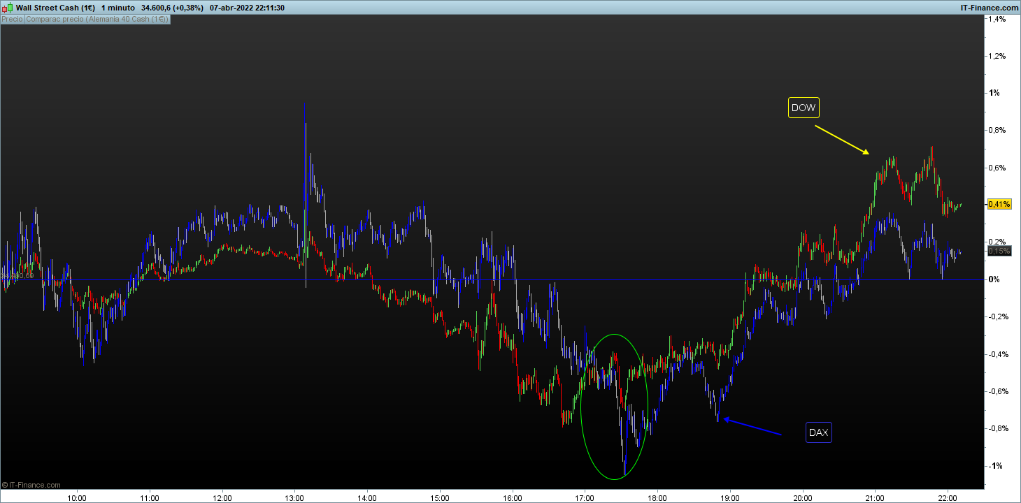El spread DOW-DAX desde las 9 de la mañana