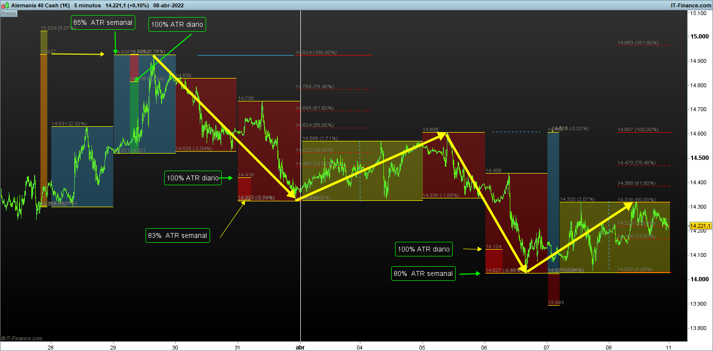 Respecto al rango ATR semanal en dax con datos muy cercanos: