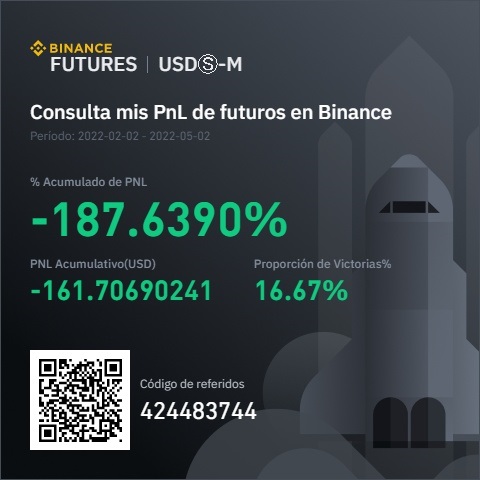 Buenas tardes, esta cuenta tiene su historia, es de mi hijo , metió 100 euros y los fundió, luego metió otros 100 y le quedaban 40, me comento si quería la cuenta, yo por curiosidad dije que si y metí 100 euros, de ahí que salga menos 165. Si saco algo pues a medias. Yo todo lo que se pueda graficar me interesa. Ya veremos.mutu escribió: 10 Abr 2022 09:17 La verdad es que no tengo claro lo que es, pero, ese porcentaje del -165% es bastante, al menos, curioso..