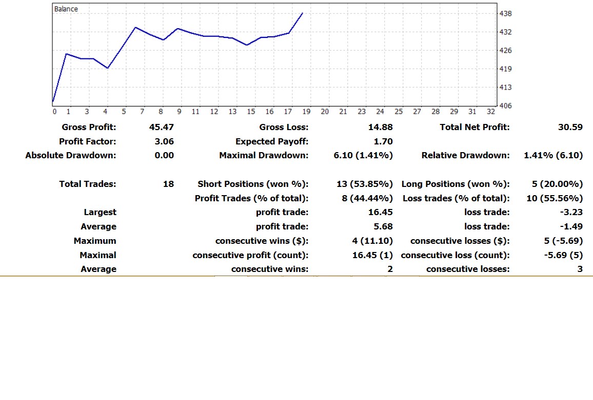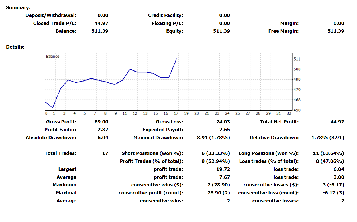 Esta semana ha ido muy bien. He tenido una tasa de aciertos del 44% pero el factor de beneficio es de 3.06. Es decir que he ganado 3 veces lo que he perdido. El DD ha sido del 1,41% lo cual me indica que he sido muy conservador en el tamaño de las posiciones.