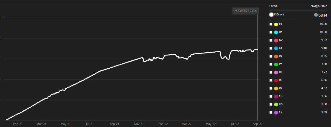 La imagen de hoy, es la calificación actual de darwinex, que ha llegado a 69 puntos, muy pronto entrara al rango de los 70.